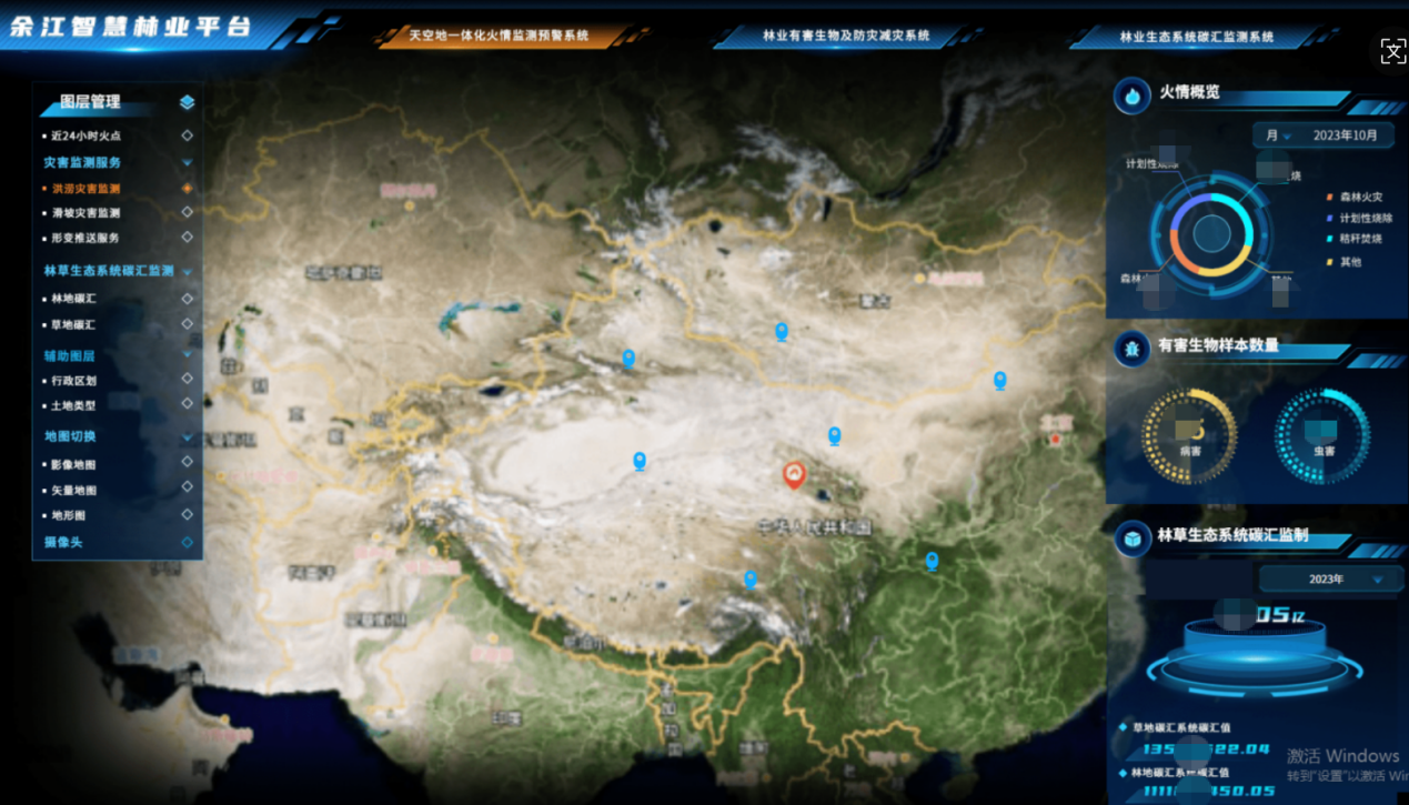 融合多源数据,实现资源分布、火情、病虫害、碳汇等信息的可视化呈现与综合分析。