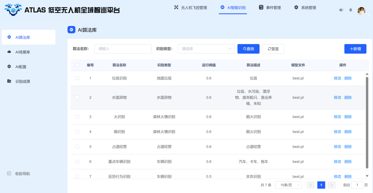 AI识别引擎:支持火情、病虫害、违规建设、水体污染等多类场景的智能识别与自动告警。