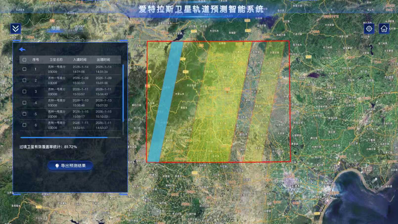 4. 高精度过境预测,赋能任务规划:系统的核心优势在于其高精度、高可靠性的过境预测能力。我们融合了先进的模型与智能优化算法,能够准确计算并预测任意卫星对指定地面区域的过境时间窗口。预测结果不仅包含精确至秒级的开始、结束时间,还提供地面覆盖轨迹、最大仰角、持续时间等关键信息,并可一键导出报告,直接服务于卫星成像任务规划、地面站跟踪计划、数据接收安排等核心业务场景,让每一次“仰望”都精准无误。