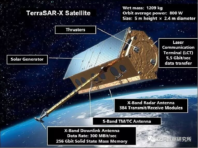 首先,德国人看不下去了(因为德国2000年就参与了SRTM项目,在NASA的航天飞机上搭载了X频段的雷达用于获取高分辨率的DEM数据,也算是合成孔径雷达这一脉的老前辈了),于是由德國航空航天中心(Deutsches Zentrum für Luft- und Raumfahrt,简称DLR)和EADS Astrium合作,于2010年启动了TanDEM-X项目,扛起SAR干涉测量的大旗,基于TerraSAR-X卫星平台,开启SAR干涉测量生成全球DEM数据的新时代。