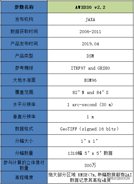 最后,就三个免费全球DEM数据产品而言,SRTM Plus具有最好的垂直精度,ASTER GDEM具有最大的覆盖区域,ALOS AW3D30具有最好的数据现时性。下面是关于三个免费全球DEM数据的属性对照表