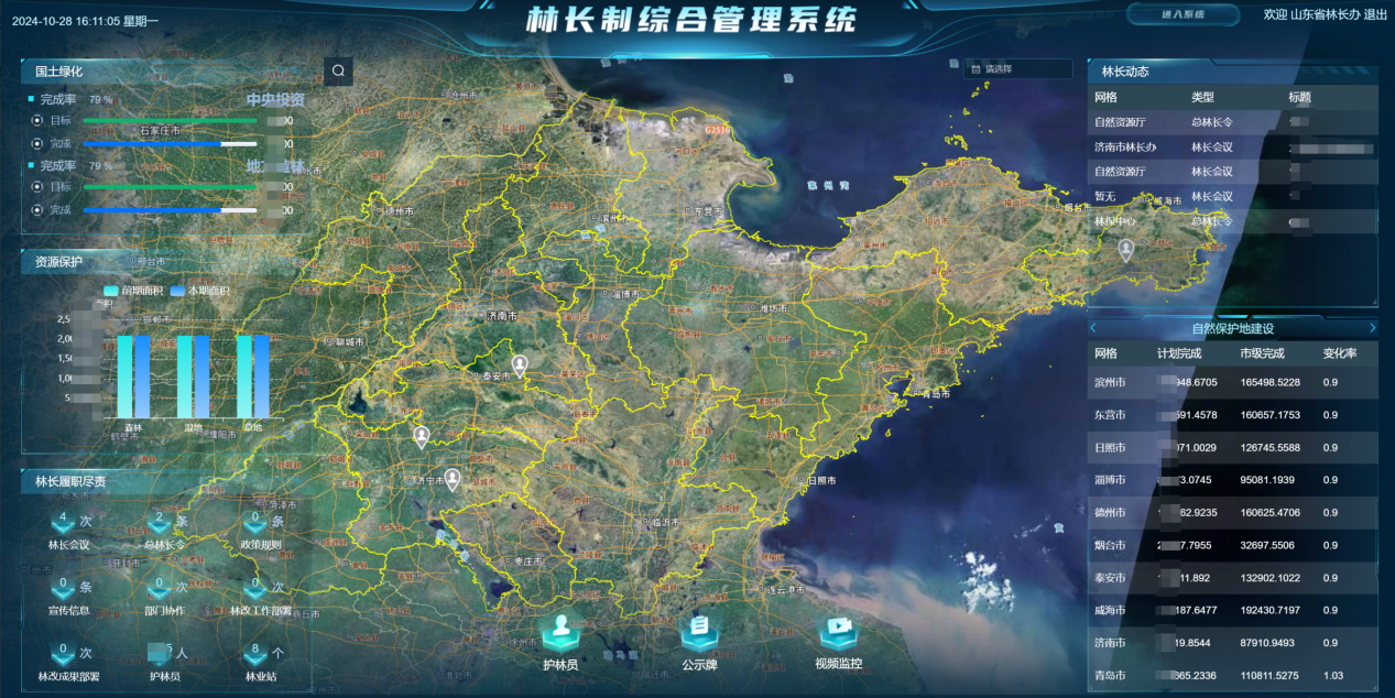 覆盖省、市、县、乡、村五级林长,支持巡林管理、考核评价、任务派发等功能。