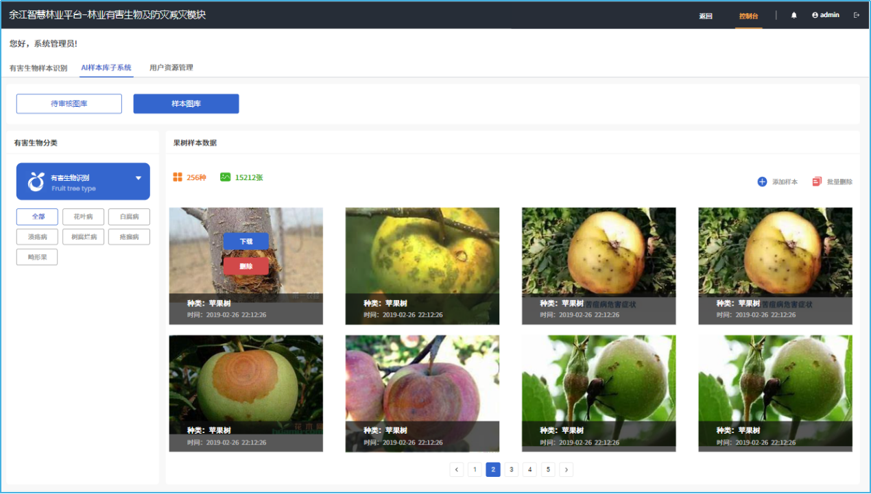 具备病害自动识别、样本库管理、发生趋势预测等功能,提升防灾减灾能力。